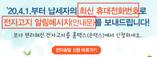 좋은 정보를 알려 드리니 꼭 신청하셔서 휴대폰 알림으로 전자 고지를 편리하게 사용하시길 바랍니다.
