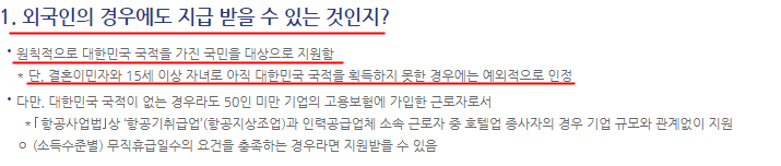 대한민국 국민도 긴급 고용안정지원금을 다 받을 수 있는 것이 아닙니다.