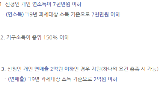 신청인 개인 연 매출이 2억 원 이하 충족