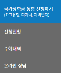 또한 국가장학금 신청 현황과 조회 내역 온라인 상담 등을 받으실 수 있습니다.