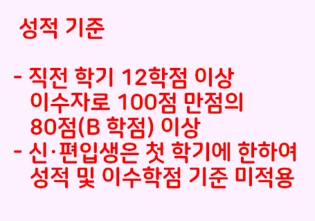 기초생활보호대상자 차상위계층의 경우 100점 만점 70학점 이상이어야 합니다.