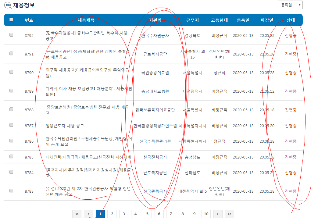 진행중인 상태의 공공기관 채용정보만 따로 저렇게 볼수있습니다.