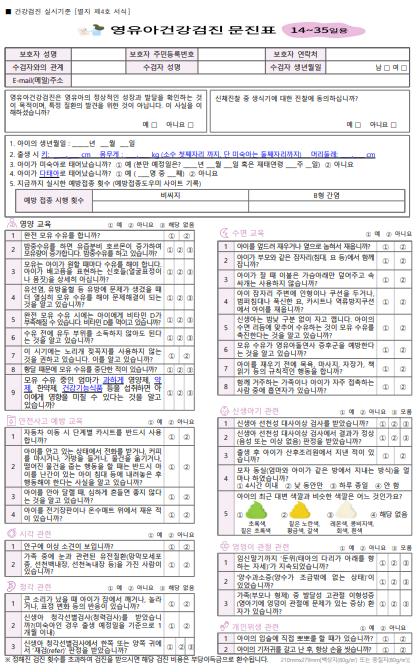 영유아 건강검진 문진표(PDF, 한글 hwp 파일)를 올려드립니다.