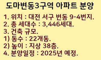 대전 도마변동3구역 아파트 분양계획을 정리했습니다.