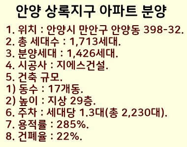 0안양 상록지구 아파트 분양계획을 정리했습니다.
