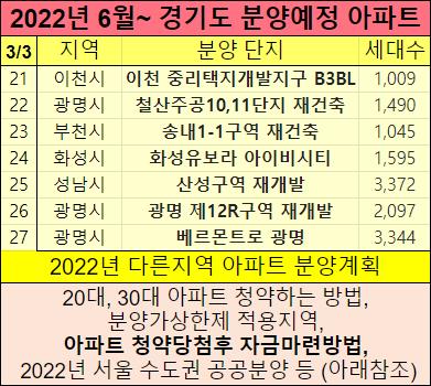 2022년 6월이후 경기도 분양예정아파트를 정리했습니다.