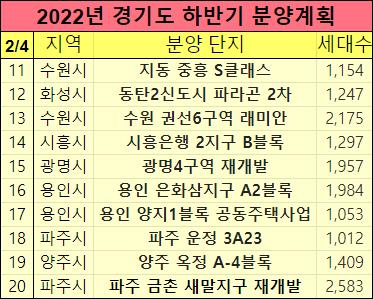 2022년 경기도 하반기 아파트 분양일정을 정리했습니다.