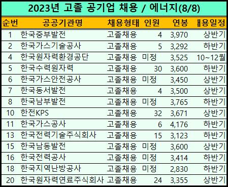 2023년 공기업 고졸 채용일정을 표로 만들었습니다.