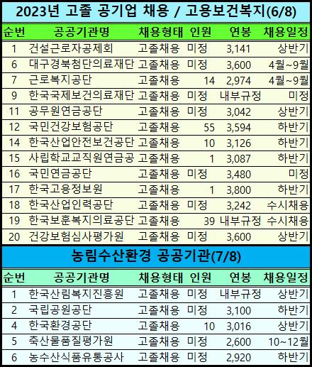 공공기관 분야별로 깔끔하게 정리했으니 확인하세요.