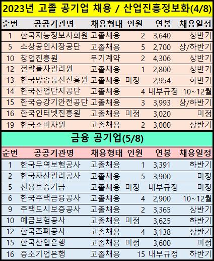 산업진흥정보화 공공기관도 2023년 고졸 채용예정인원이 굉장히 많습니다.