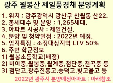 2022년에 분양예정인 광주 월봉산 제일풍경채 분양계획을 정리했습니다.