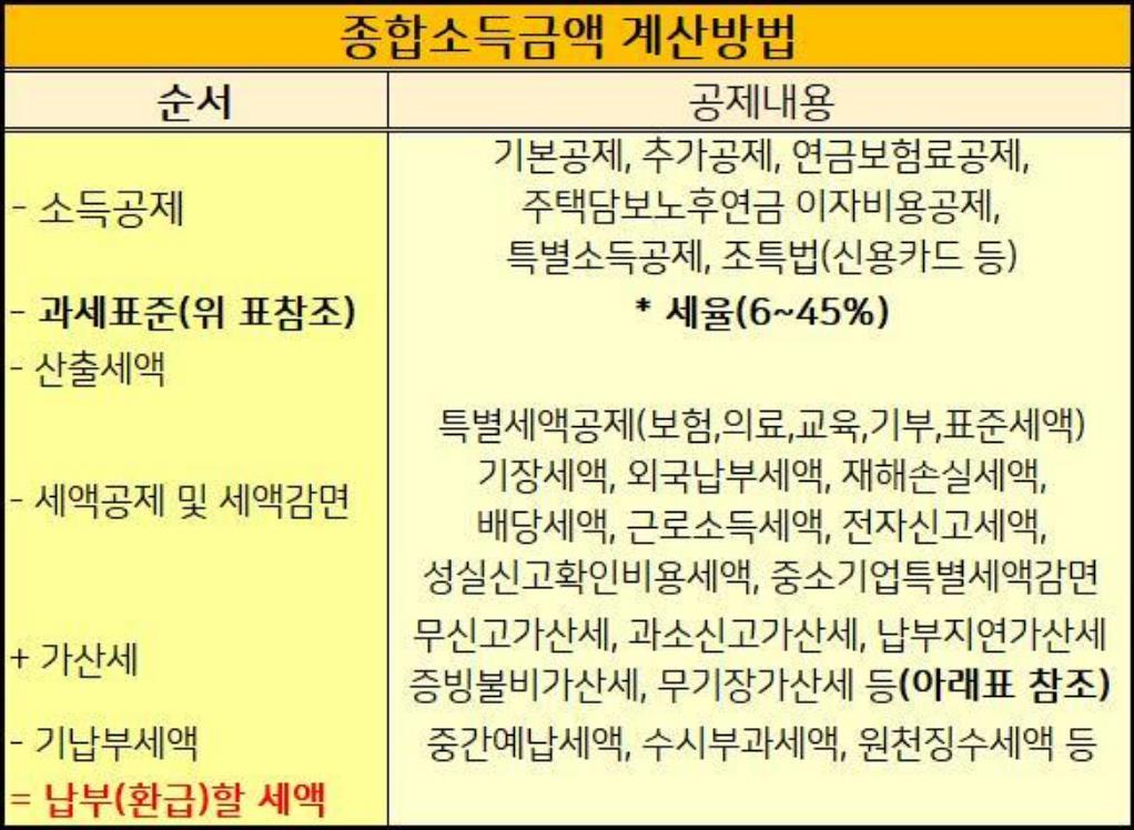 1. 매출에서 기본공제와 추가공제사항, 연금보험공제, 주택담보노후연금공제, 신용카드 등 소득공제를 해야합니다.