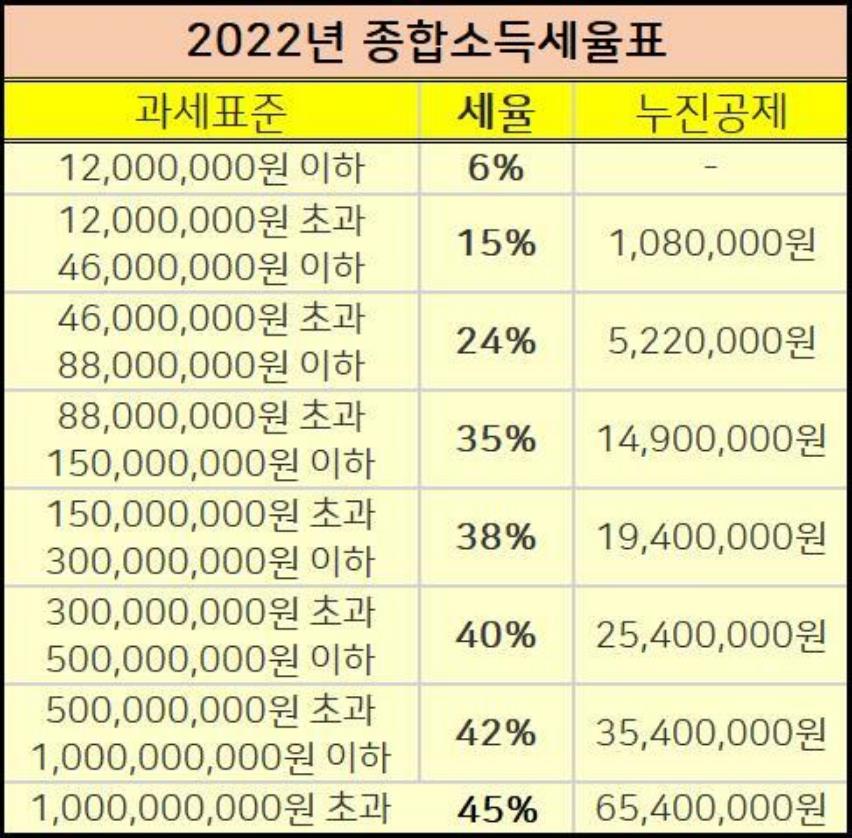2022년 종합소득세 세율