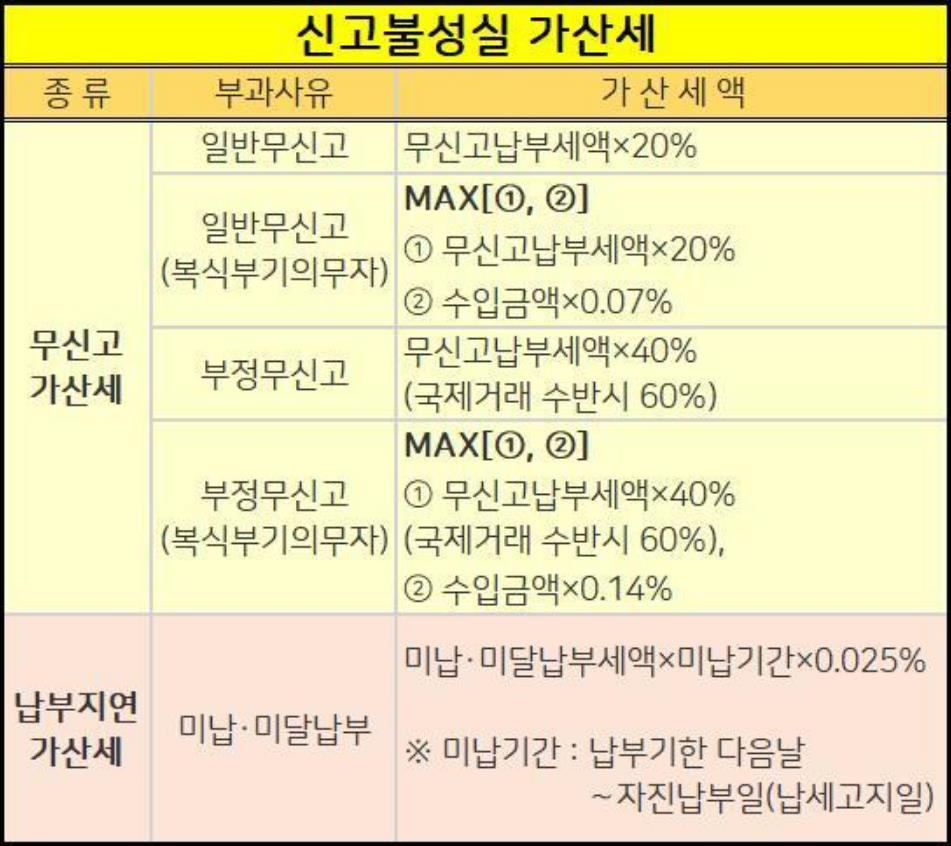 이 기간을 지나고나서도 신고를 할수있지만 가산세가 아래와 같이 추가됩니다.