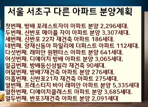 서울 서초구에 아파트 분양계획들도 확인하세요.