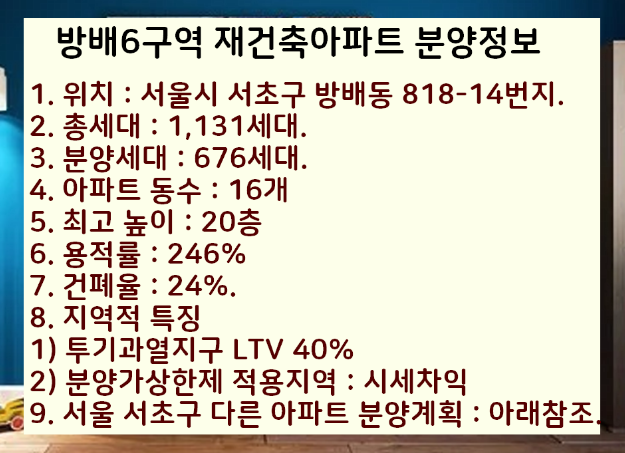 이렇게 오늘은 서울시 서포구에 방배6구역 재건축아파트 일반분양에 대해서 알아봤습니다.
