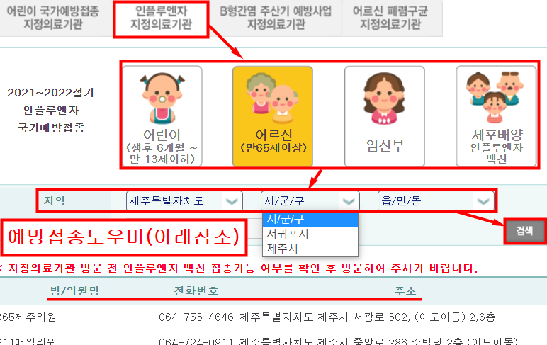 아래 제주도에서 독감 무료 예방접종 지정병원을 조회방법을 확인하세요.