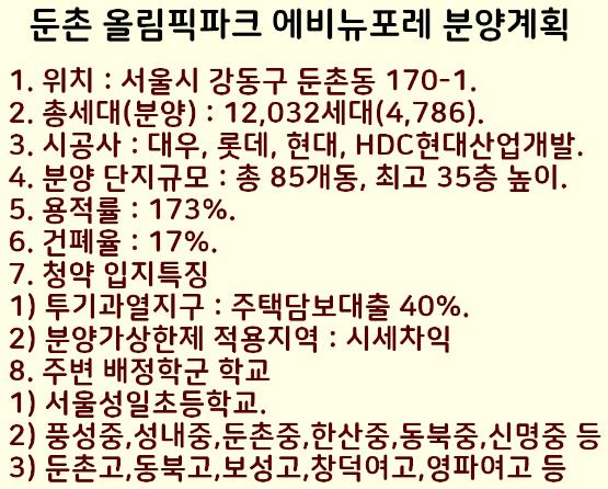 서울시 강동구의 둔촌 올림픽파크 에비뉴포레 아파트 분양계획을 정리했습니다.