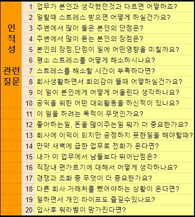 회사의 규율과 개인의 자유 중 무엇이 더 중요하다고 생각하지는까지 다양한 예상 질문들이 있습니다.