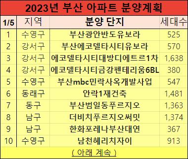 2023년 부산 분양예정 아파트를 표로 정리했습니다.