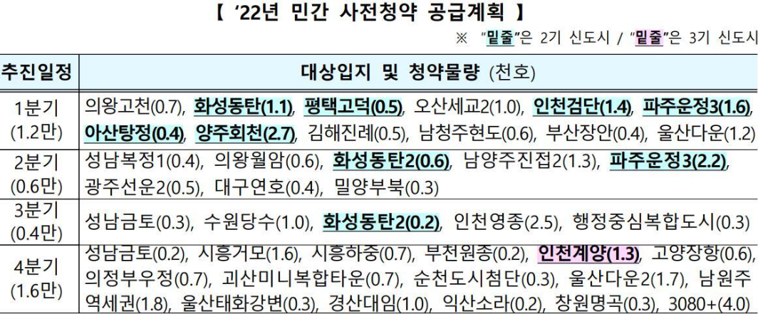 2022년 서울 수도권 공공분양 일정