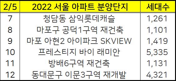 아래 2022년 서울 아파트 분양계획표를 확인하시고 청약일정에 참고하세요.