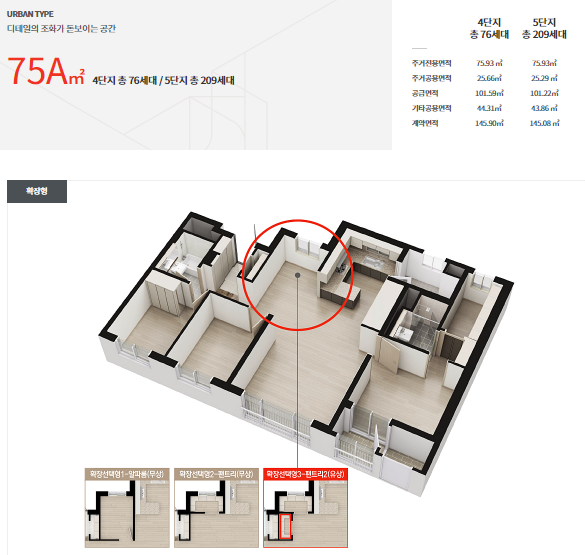 세번째로 분양 평수 : 4단지(59~105형) / 5단지(59~156형)