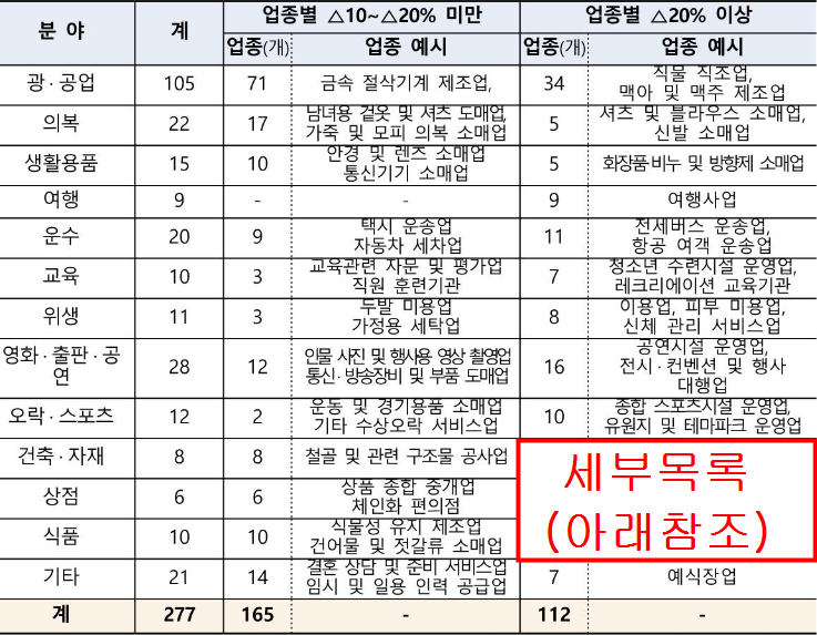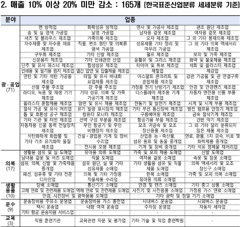 경영위기업종 목록이 많아서 나눠서 그림 첨부하였습니다.
