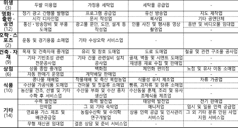이는 한국표준산업분류 세세분류 기준표를 적용하여 작성한것이라고 합니다.