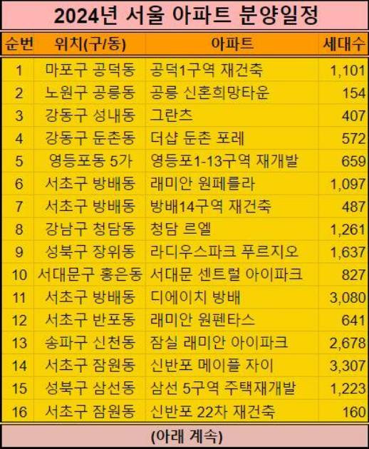추가적으로 2024년 서울 아파트 분양계획도 같이 올려드리니 참고하세요.