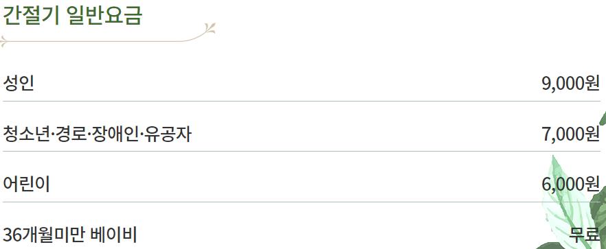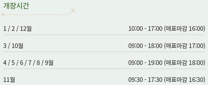 개장시간과 입장료(무료 대상자), 체험프로그램 등을 정리했습니다.