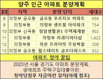 2023년 양주 아파트 분양계획을 표로 만들었습니다.