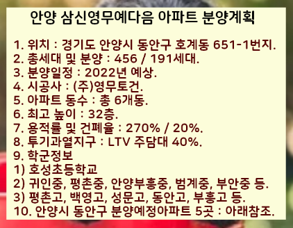 이렇게 오늘은 경기도 안양시에서 분양예정인 아파트 '삼신영무예다음' 아파트 분나쁘양정보를 정리하였습니다.