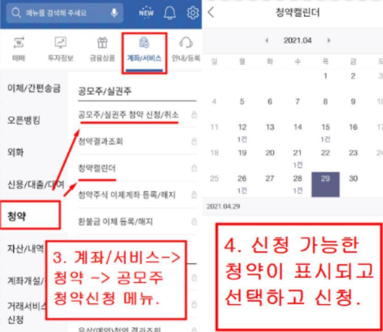 2 뱅킹/계좌정보를 선택하시면 하위메뉴에 청약/권리가 있슨다.