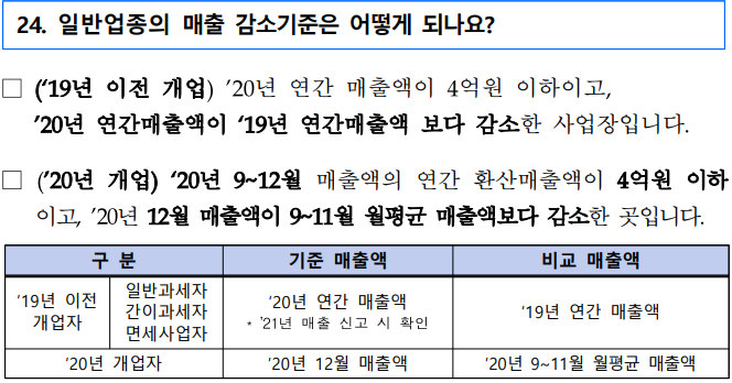 * 4억원 이하의 매출 일반업종 매출감소여건은 아래에 자세하게 설명해놨습니다.