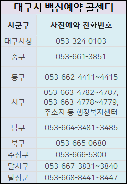 대구시의 경우 고령층이 많아서 더욱더 백신 전화예약하시려는분들이 많을듯합니다.
