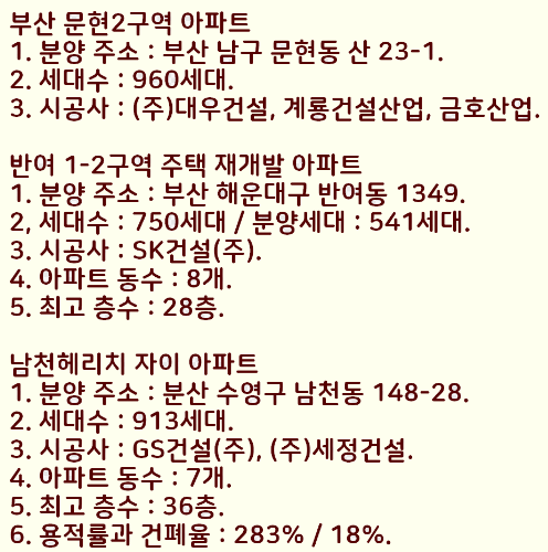 아래 9월~12월 부산 아파트 분양계획 및 정보를 확인하시기 바랍니다.