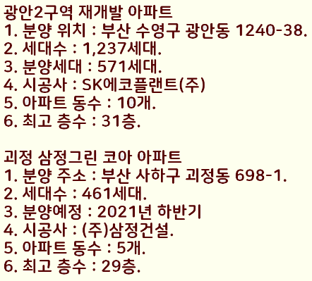 2021년 부산에서 9월부터 12월까지 분양예정인 아파트를 정리하였습니다.