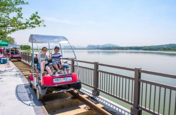 호수를 따라서 레일바이크를 탈수있어서 정말 신나요.