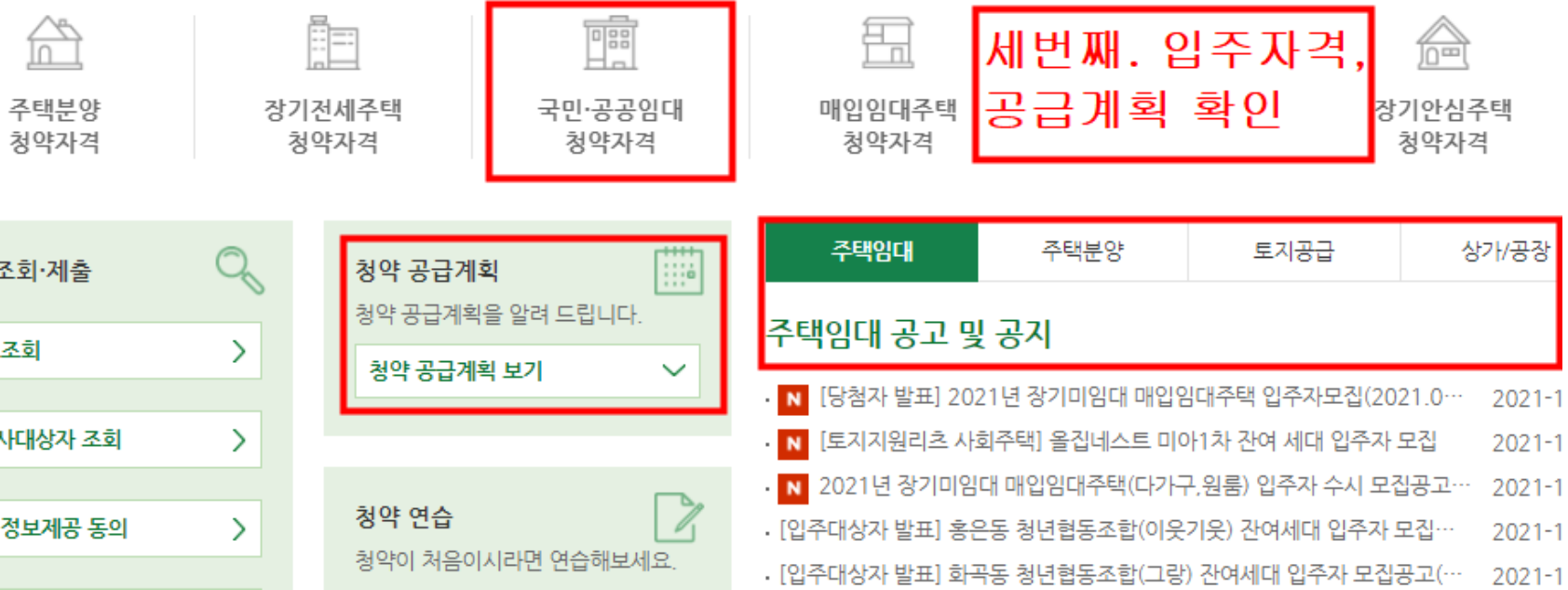 세번쨰. '청약신청하기'는 국민임대주택 혹은 분양 아파트 청약일정에 맞춰서 접수하시면 됩니다.