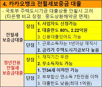 만약 연소득이 5천만원이 넘는 청년이라면 카카오뱅크 전월세보증금도 이용해볼수있습니다.