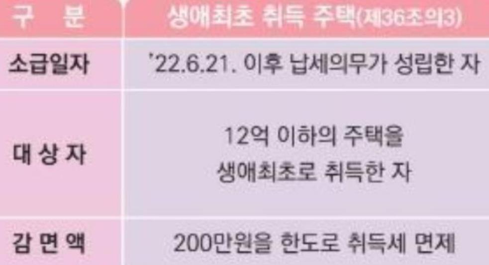 생애최초 주택구입시 취득세 200만원을 감면해줍니다.