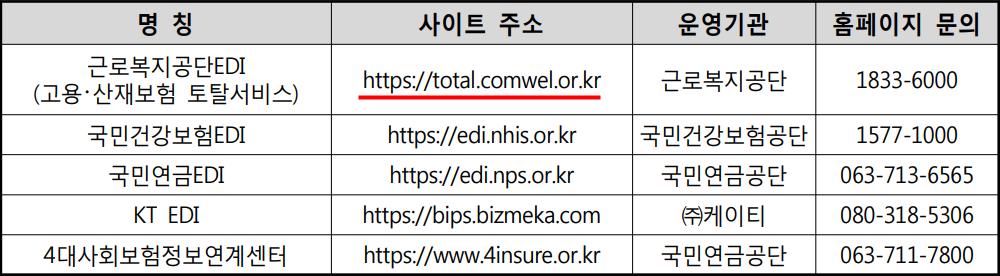 위에서 근로복지공단과 국민건강보험공단, 국민연금공단 등 신청관련 홈페이지와 연락처를 정리해서 표로 알려드렸으니 재참고하시기 바랍니다.