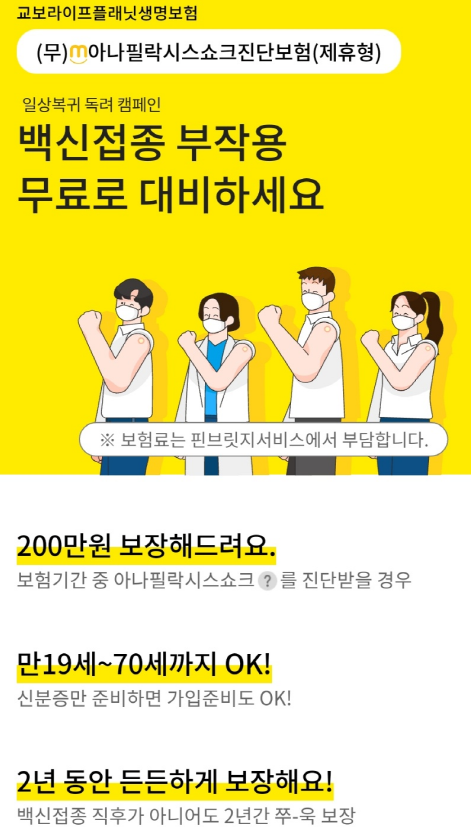 하지만 이렇게 무료로 코로나 백신 부작용중에 하나인 아나필락시스 쇼크 진단보험을 제공해주면 고객정보도 얻고 고객들은 돈안들고 가입하고 서로 좋은듯합니다.