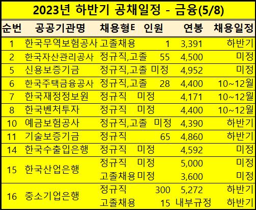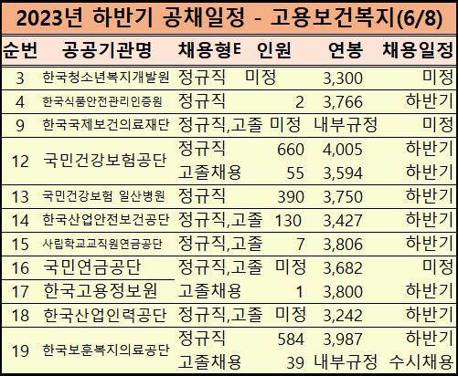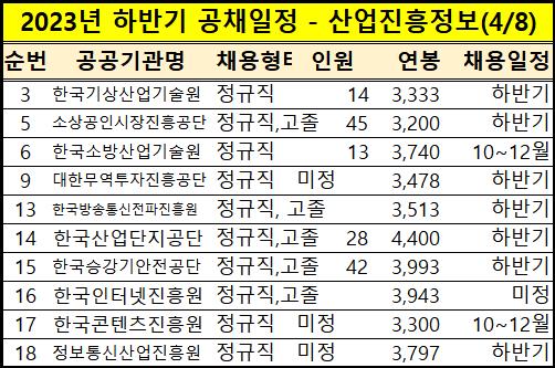 이렇게 2023년 하반기 공채일정을 표로 만들어서 알려드렸는데요.