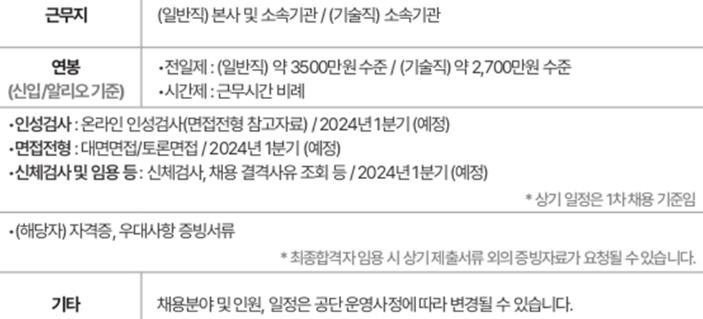 아래 모집분야, 채용일정, 연봉, 필기시험까지 모두 확인하세요.