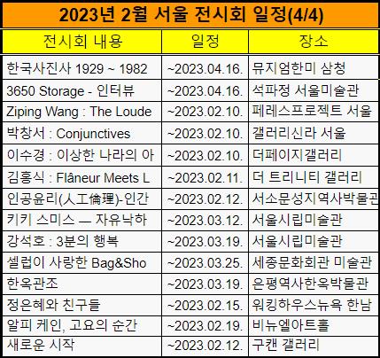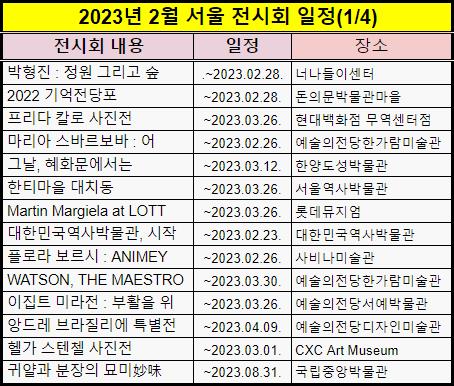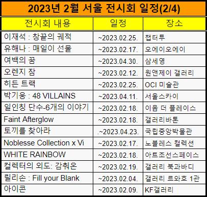 2월 서울 전시회 일정을 표로 정리했습니다.
