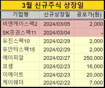 2024년 2월에 신규상장예정 주식들을 정리해서 알려드렸습니다.