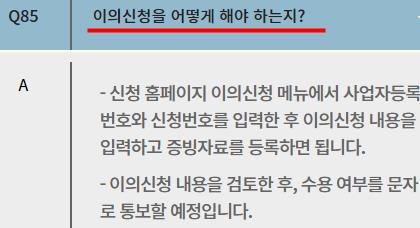 사업자등록번호와 신청번호를 입력하고 이의신청 내용을 기입하시면 됩니다.
