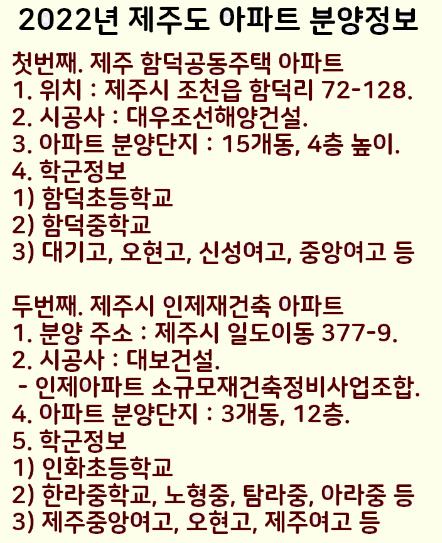 2022년 제주도 아파트 분양계획를 보시고 청약일정에 참고시기바랍니다.